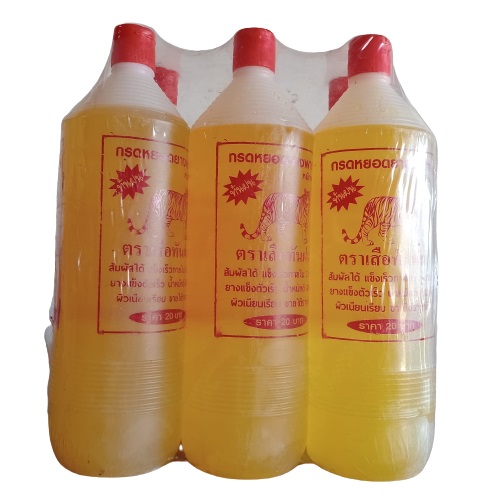 ນ້ຳກົດໃສ່ຢາງພາລາ ກາເສືອໂຕສ່ວຍນ້ຳແດງ, ຂາຍເປັນແພັກ, 1 ແພັກ ມີ 6 ຕຸກ.