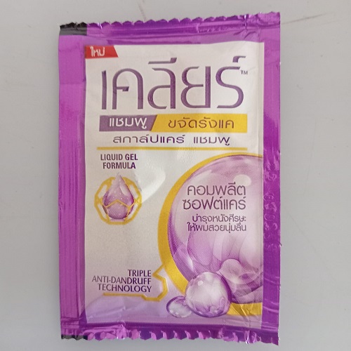 ຢາສະຜົມ CLEAR ສີມ່ວງ 5 ມລ, ຂາຍເປັນໂຫຼ, ໂຫຼ 1 ມີ 15 ແຜ່ນ ແລະ ຂາຍເປັນແພັກ, ແພັກ 1 ມີ 4 ໂຫຼ.